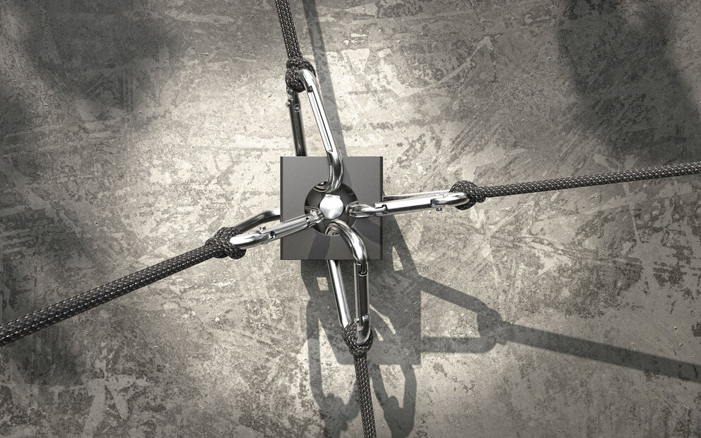 Der Würfel ist aus stabilem Stahl gefertigt und für mittlere bis hohe Lasten ausgelegt und hält sogar an der filigransten Stelle maximal 55 kg bei geeignetem Befestigungsmaterial für den jeweiligen Untergrund. Für konkrete Traglasten empfehlen wir je nach Montageart eine technische Rücksprache – schreib uns gern!