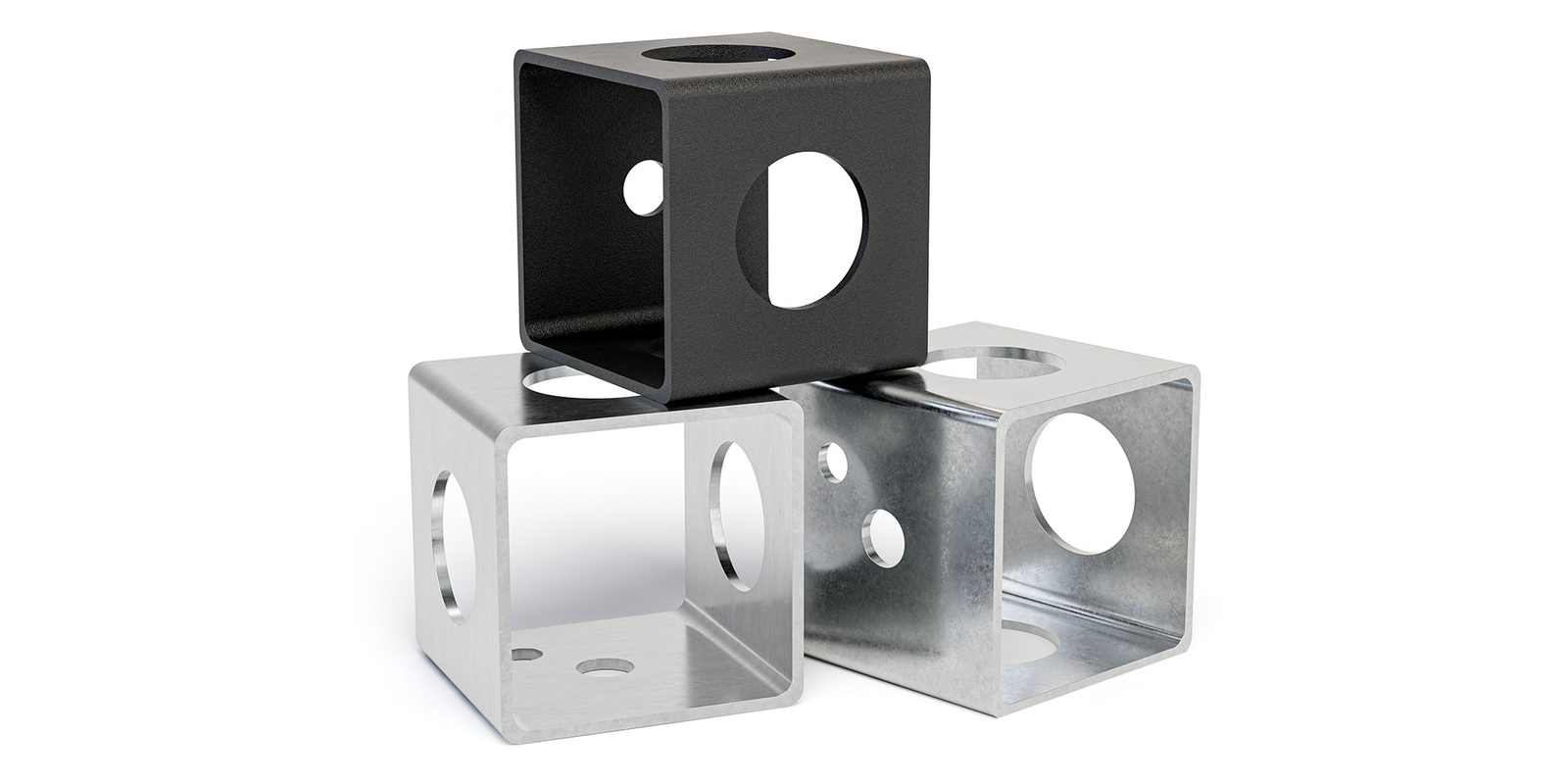 Der Befestigungswürfel ist ein echtes Multitalent: Drei Rundöffnungen, zwei Rechteckflächen und eine Montagefläche – perfekt, um Seile, Kabelbinder, Ketten oder Haken clever und sicher zu führen. Seine kompakte 40-mm-Kantenlänge passt in jedes Setup, seine Stahlkonstruktion hält, was andere nur versprechen.