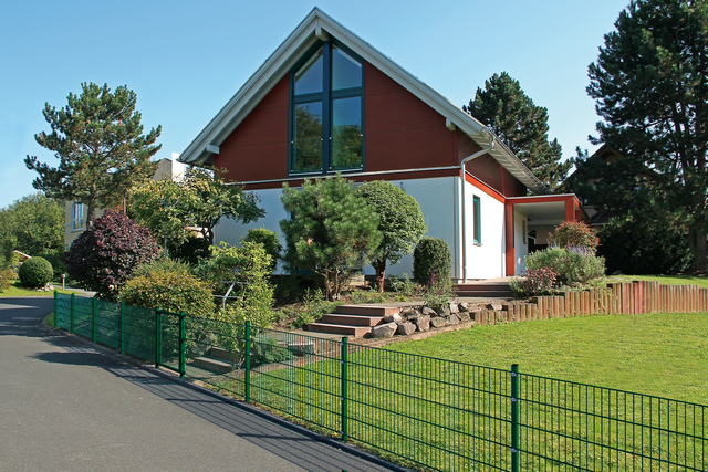 Con el Juego de fijación para rejillas de varilla, las rejillas de varilla doble pueden montarse en paredes o postes existentes. Esto permite una conexión limpia con la pared de una casa o una valla vecina con postes de Metal o madera, por ejemplo.