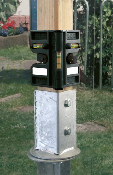 Les aides de montage pour supports de poteaux, ancres de sol et poteaux métalliques vous permettent de voir d'un coup d'œil si l'article à monter est d'aplomb. La fixation du niveau d'eau angulaire - grâce aux aimants intégrés ou à la bande élastique - permet un réajustement facile. Le cordeau de maçon inclus dans le kit pour la mise à niveau ou l'haubanage et le crayon de charpentier robuste pour le marquage rendent le montage des poteaux de clôture, par exemple, simple et confortable.