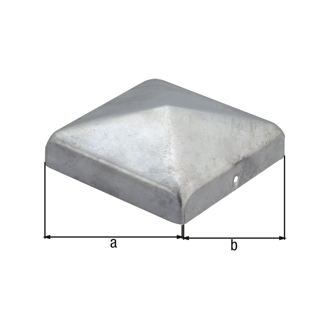 • Capuchon de poteau pour poteaux en bois carré, avec trous de vis fraisés, forme plate, Matériau: Acier brut, Finition: galvanisée à chaud, Longueur: 70 mm, Largeur: 70 mm