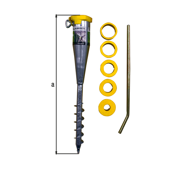 • ancre à visser pour tubes, adapté à tous les tubes verticaux avec un diamètre entre 25 et 65 mm, Matériau: Acier brut, Finition: galvanisée à chaud, Longueur totale: 560 mm, Garantie de 15 ans contre l'oxydation