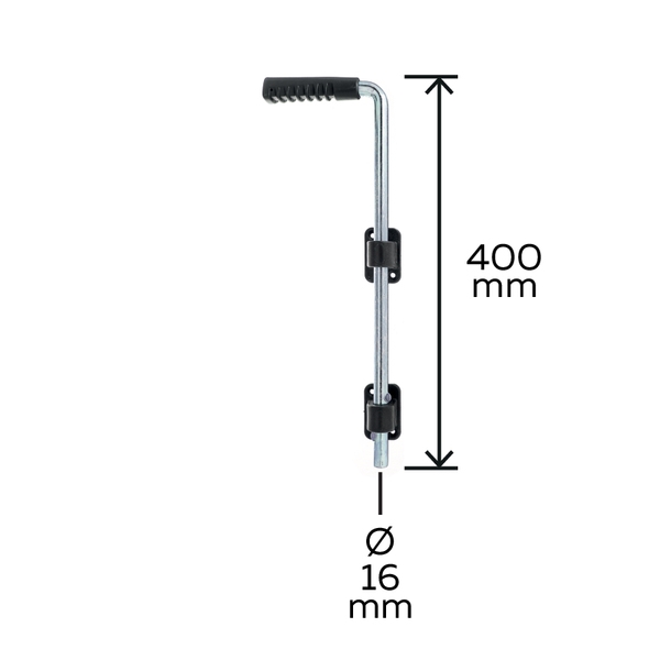 - Acier brut, galvanisée, passivée, angle de guidage et poignée en plastique noirs, renforcés en fibre de verre
