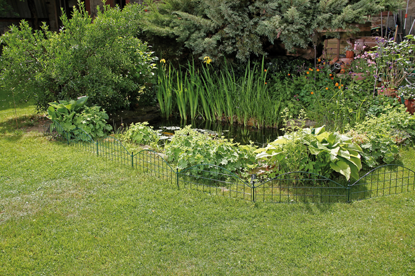 Pole ogrodzenia stawu, łuk na środku na dole