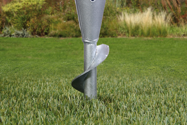 - Dank spiralförmigen Dorn lässt sich die Hülse ohne Beton fest im Erdreich verankern, was eine wiederverwendbare und umweltfreundliche Lösung darstellt.