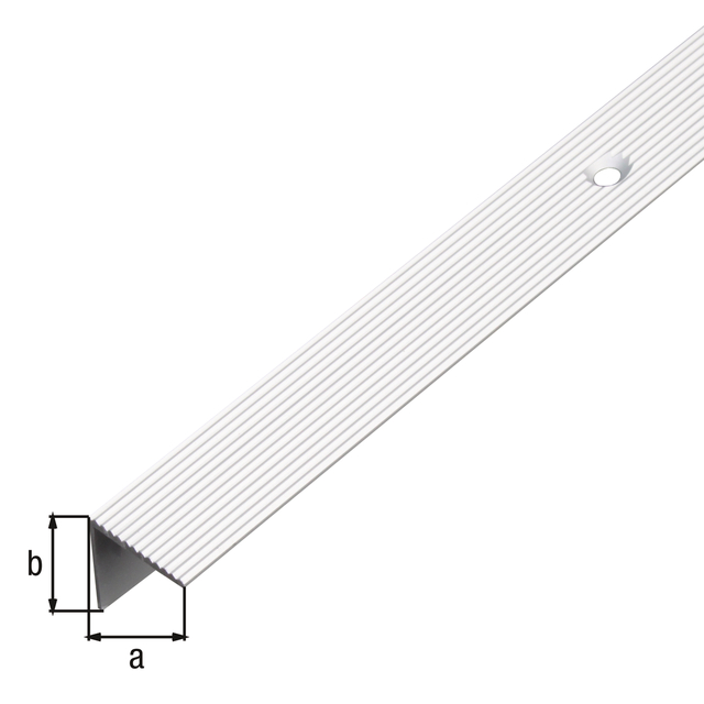 • Treppenkanten-Schutzprofil, mit versenkten Schraublöchern, fein geriffelt, Material: Aluminium, Oberfläche: silberfarbig eloxiert, Breite: 20 mm, Höhe: 20 mm, Länge: 1000 mm, Materialstärke: 1,80 mm