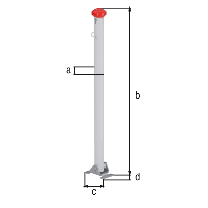 - Stahl roh, feuerverzinkt, weiß kunststoffbeschichtet mit zwei roten, reflektierenden Ringen, zum Aufschrauben, gleichschließendes Profilzylinderschloss mit drei Schlüsseln