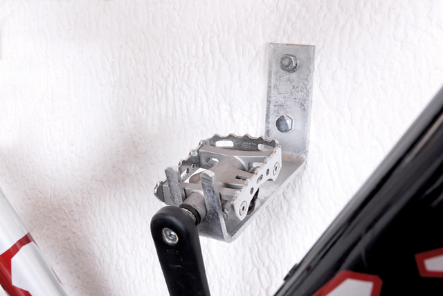 - Mit zwei Radaufnahmewinkeln und einen Pedalhalter, zur Wandmontage eines Fahrrads.
