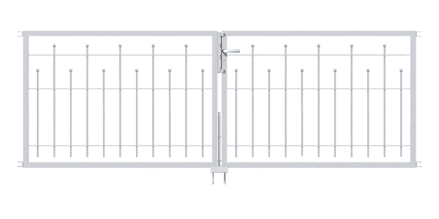 - Die Lieferung erfolgt inkl. Schloss, Türdrücker, Anschlag, Kloben, Bodenschieber, Auflaufstütze.